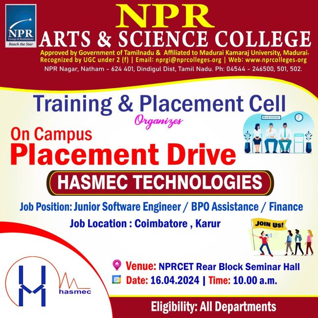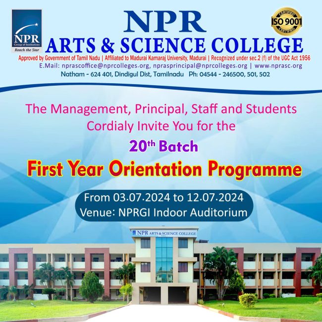 Our NPR Arts & Science College organizes orientation day every year for the newly admitted students, in which so many motivating speech with experts from various domains, our alumnae interactions, some connects with HR and some games for creating self confidence and problem solving will be conducted. Orientation day is a way to welcome new…