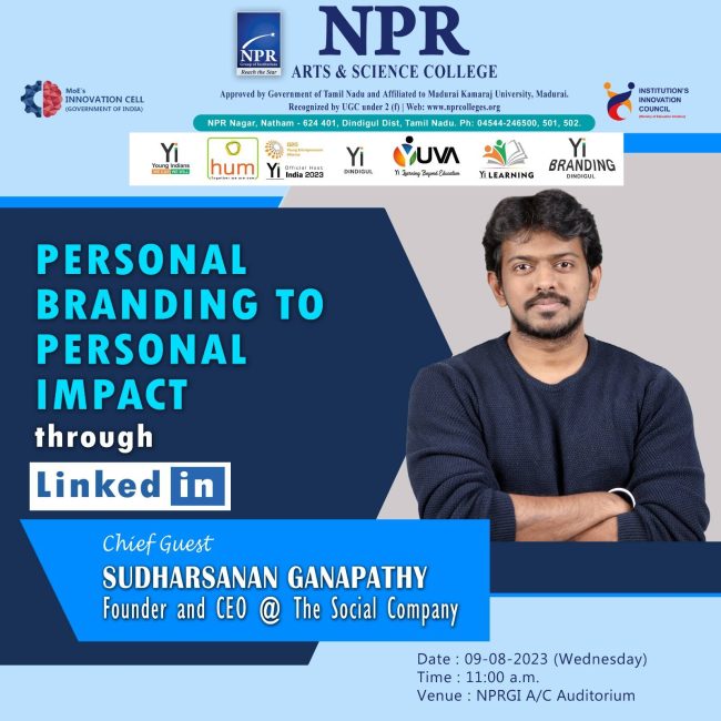 The NPR Arts & Science College IQAC organizes a Guest Lecture on Personal Branding to Personal Impact through Linkedin