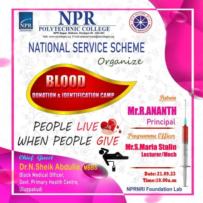 The NSS Units of NPR Arts & Science College organizes a Blood Donation Camp