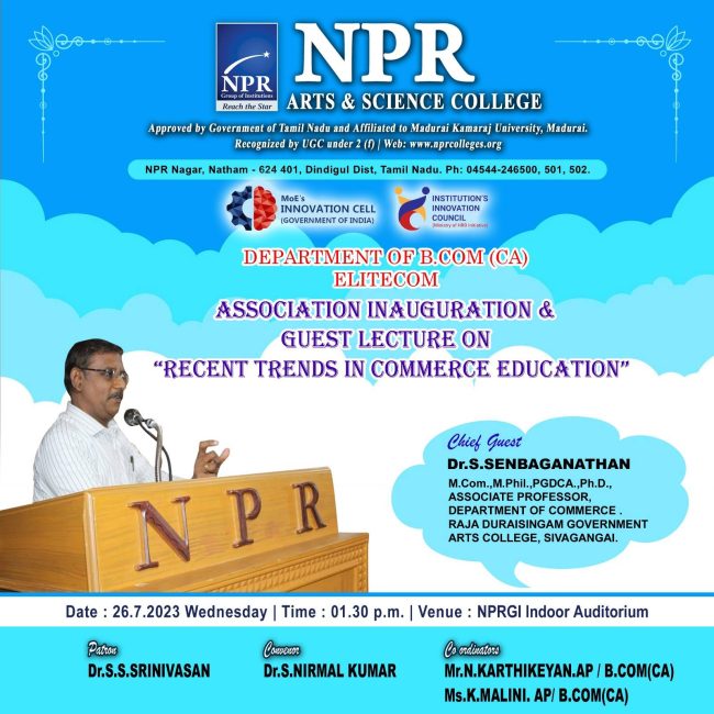 The Department of Commerce with Computer Applications organizes an Association Inauguration & Guest Lecture on Recent Trends in Commerce Education