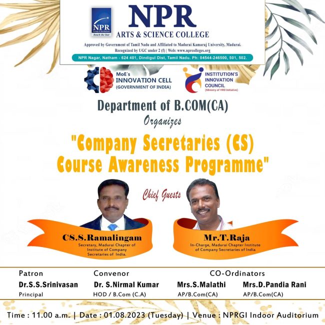 The Department of Commerce with Computer Applications organizes a Company Secretary (CS)Course Awareness Programme