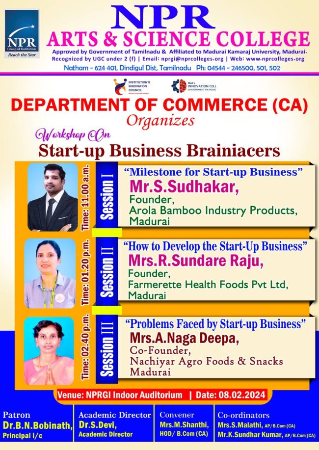 The Department of Commerce with Computer Applications organizes a Workshop on Business Brainiacers