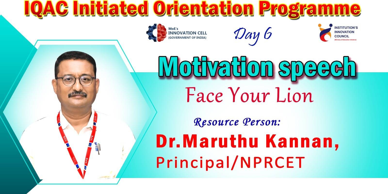 The NPR Arts and Science College organizes a Day – 6 Orientation Program for freshers batch 2024-27 a Motivational Speech for their students.