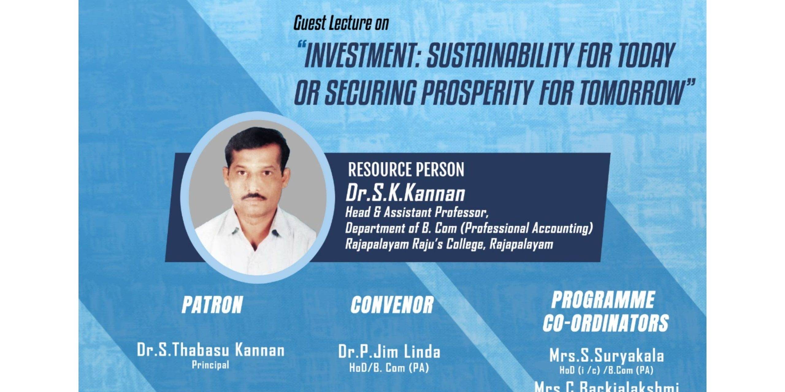 The Department of Commerce – Professional Accounting organizes a Guest Lecture on Investment: Sustainability for Today or Securing Prosperity for Tomorrow for their students