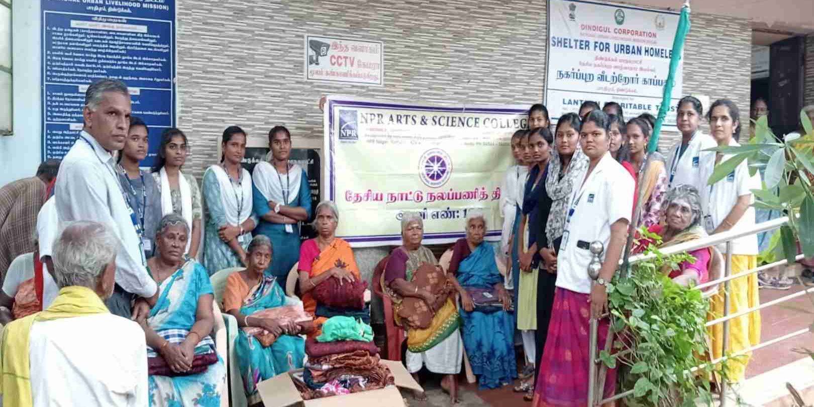 The National Service Scheme Units:195, 196 organized Diwali Celebration with Needy Homeless Senior Citizens.