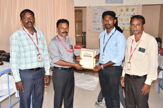 The National Service Scheme Unit (195) organized a Blood Donation Camp Guest of Honor: Mr. S. Ravi, Senior Manager, Blood Center, Meenakshi Mission Hospital and Research Center, Madurai,.