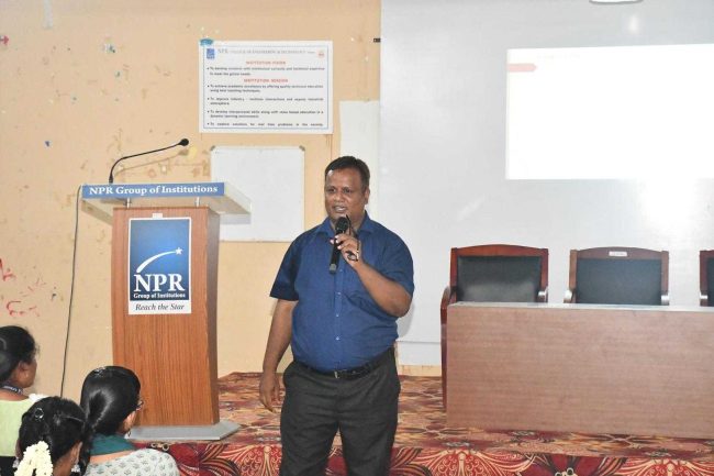 The Research & Development Cell Organized An Awareness Programme on Nano Technology for their students. Resource Person Dr. G. Gopu Associate Professor Department of Industrial Chemistry, Alagappa University, Karaikudi.